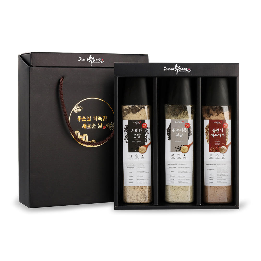 HOME > 선물세트 > 선물세트 > 고압로스팅 미숫가루 선물세트 서리태 쥐눈이콩 동안메 곡물가루